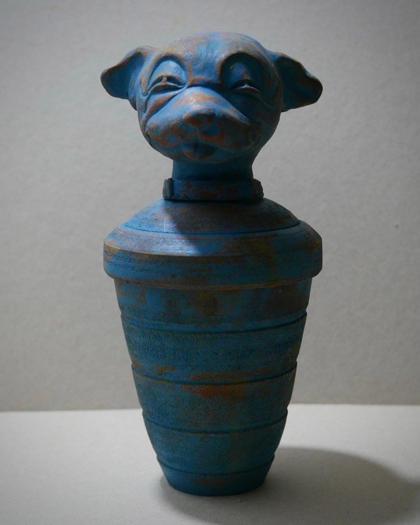 I’ve been making inlaid stoneware matchbox pin badges by hand, but in a small production line, which means I’ve been able to make them affordable. Each one goes through many processes (see vid below), each different from the last. To be worn, or stood up in its little matchbox as a reminder that we will all shuffle off in the end, so best blooming well get on with it.
