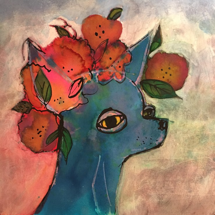 Well it’s Day 41 of the Blossom a Day project and I’m having a lovely time using Dr Martin’s liquid watercolours. They interact so interestingly with each other. Layering with bleed-proof white makes beautiful accidental dreamlike marks and colours. This is great. Can’t wait to get stuck in to the next one.