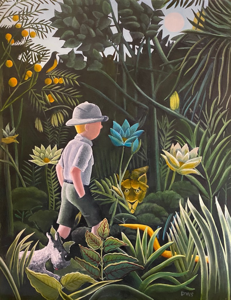 Posted on December 16, 2020December 23, 2021 by davidwslackWhere Angels Fear Now Sold. A new painting has arrived. ‘Understory’ finds our hero in exotic climes… ‘Understory’ oil on panel 14×18” (image size) £1,200 Share this: Click to share on X (Opens in new window) X Click to share on Facebook (Opens in new window) Facebook Like Loading...